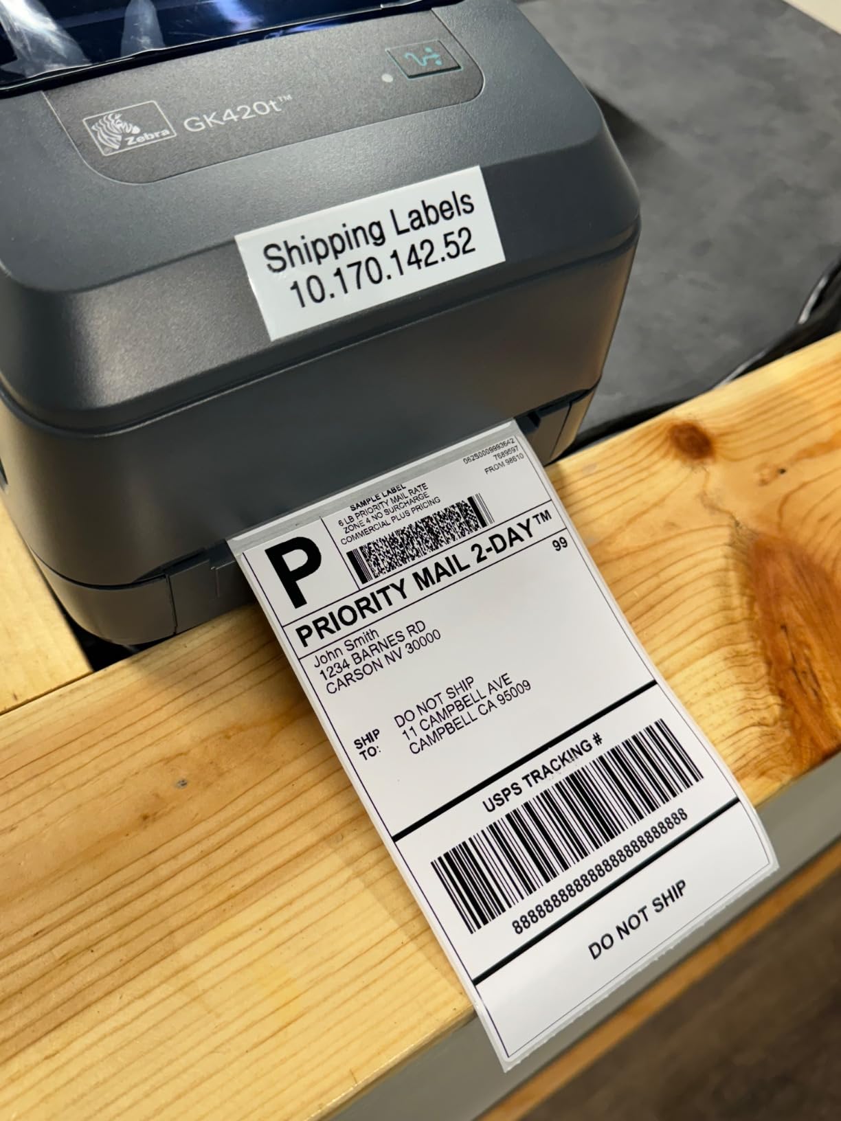 Works great with our Zebra GK420T thermal transfer printers. No issues with quality or adhesive – they’re pretty generic labels but they get the job done.